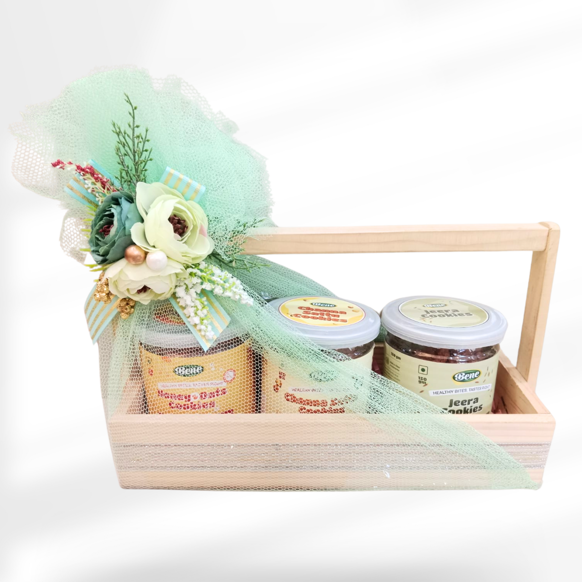 This special hamper includes three jars of our healthy, flavorful cookies made with wholesome ingredients. Offering a perfect blend of taste and nutrition, this hamper is an ideal gift for any occasion, bringing both health and delight to your loved ones.